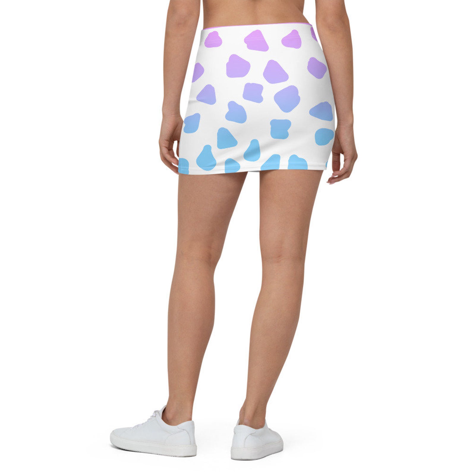 Fitted cow print mini skirt! Simple and cute <3 This skirt is available in the following colors in my shop: Black, Pink, Rainbow (Pink, Blue, and Purple Gradient), and Brown!