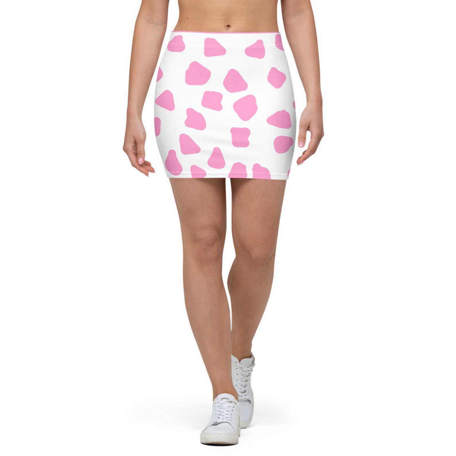 Fitted cow print mini skirt! Simple and cute <3 This skirt is available in the following colors in my shop: Black, Pink, Rainbow (Pink, Blue, and Purple Gradient), and Brown!